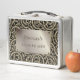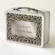 This is a standard metal lunchbox that appears to work just fine. We designed this box ourselves with an uploaded photo and custom text on the front and back. It looks absolutely beautiful except the front of the lunchbox is not centered like it shows in the photo. The print borders don't align with the inset flat part of the box where the preview photo online showed it perfectly centered in there. The back looks nice and centered though.