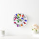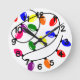 This wall clock has a Christmas design of tangled lights in red, blue, yellow, green, pink, and purple.