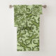 Follow the lizard wherever he goes. You can with this stylized illustration of a Lizard in shades of green with black line and glowing orange eyes on a background of light green lizard skin. Also sold singly as a washcloth, hand towel or a bath towel.