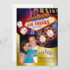 Photo cutout Las Vegas invitation shows the excitement of that Nevada city with the glamourous, trademark Vegas Welcome sign, VIP casino chips with you and your honey's names (contact me to add your names to the chips) and rolling heart dice. Easy to personalize - use the "Customize It" button to add your own text and photo. For info or requests, email: cheryl@cheryldanielsart.com/contact. Matching stickers, magnet favours and more available.