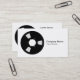 A business card template with a bold recording tape spool motif, creating a clean modern design suitable for many types of business. Company name and business on the front of the card. Name, address, telephony, email and web address on the reverse with a repeat of the motif. The card can also be further customized.