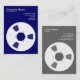 A business card template with a bold reel to reel tape spool motif on the front and back. Company name, business type and address on the front with name, job title, telephony, web and email addresses on the back, with a similar layout. This card can also be further customized.