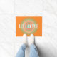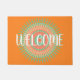 Un tapis de bienvenue au style hippy et coloré, avec l'illustration du mandala indien contre un arrière - plan de couleur terreux et personnalisable, avec signe de bienvenue. Un tapis de porte d'accueil chaleureux, coloré et arty des années 60, parfait pour votre maison.