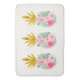 Ce mignon tapis de bain présente des ananas préppy de fleurs roses tropicales et de l'or sur un arrière - plan de pois.