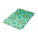 Tapis de bain dans un motif de teinture à cravate dans les tons bleu cobalt, vert et jaune avec un aqua / seaglass vert arrière - plan