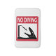 Rappelez chacun que la plongée est interdite, particulièrement quand un reptile aquatique préhistorique est dans la piscine.