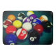 Ce tapis de bain a des ballons de billard sur lequel on peut voir.