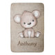 Bain en peluche à l'aquarelle mignonne sur le faux tapis arrière - plan burlap. Ajoutez votre nom. Si mignon pour garçon ou fille. Superbe aspect rustique du pays.