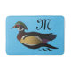 Une belle sauce duck swimming. The illustration is done from the side with a black water wave from the tail feathers.