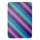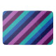 Un grand tapis de bain de taille motif coloré avec des rayures de diagonale en turquoise cool, bleu océanique, bleu marine, violet de prune et lavande.