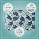 This elegant botanical design features flowing tropical leaves layered with soft blue flowers in a refined, nature-inspired composition. The artwork blends deep navy foliage with gentle sage greens and pale blue blooms, creating a calming yet sophisticated visual balance.