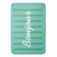 Bonjour Bath mat est un tapis de bain rayé bleu et vert avec un mème mignon et drôle de dire. Le mot "Bonjour" en français est écrit dans une typographie de script amusante. C'est un accessoire de salle de bain parfait pour les amateurs de français, les francophones qui aiment l'humour ou les étudiants français et les professeurs de français.