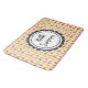 Un tapis de bain avec l'image d'un motif d'été de popsicles et de crème glacée en aquarelles. Bonjour été écrit dans une police tendance amusante dans un cadre lunatique rond.