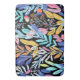 Un motif floral coloré avec des feuilles tropicaux et des fleurs, créant un design dynamique et animé