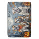 Libérez l'esprit éffrayant avec ce design d'Halloween étrange avec une meute de chiens sous un ciel sombre et clair de lune, entourée de chauves-souris volantes et de citrouilles brillants. Parfait pour ceux qui aiment une touche de plaisir effrayant avec leurs amis en fureur !