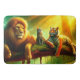 Ce tapis de bain contient un lion, un tigre et un chat maison.