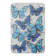 Vertical composition of réalistes, blue and white morpho butterflies on gray textured background. Morphine bleu.