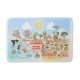 Une scène lumineuse et colorée offre une vue spectaculaire de la Californie du Sud - personnages farfelus sur la plage et le désert de SoCal présentant Los Angeles, San Diego, Orange County, Père Noël Barbara, Riverside, Palm Springs, Anza Borrego et Joshua Tree parcs ainsi que les villes frontalières de Tijuana, Tecate et Mexicali. Cette scène pleine de charme a tout - un surfeur pend dix tandis qu'un orque saute de l'eau, des animaux zoo saluent les touristes, un mec musclé se met en place comme un T-Rex rugit un défi et un tank se met en position et bien plus encore...