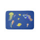 Ce joli matelas coloré ravira votre salle de bain avec une touche exotique. Cheval de mer coloré, méduses et poissons nageant dans une mer très bleue. Toutes les images sont personnalisables et la couleur arrière - plan peut être modifiée.