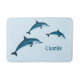 Adorable tapis bleu doux avec trois dauphins ludiques. Vous pouvez le customiser avec votre nom.