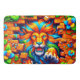 Ce tapis de bain a un design de lion dessus.
