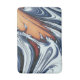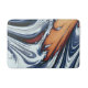 Un design artistique abstrait d'eau de rivière tourbillonnante en bleu, noir, orange et blanc.