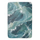 Une représentation numériquement des vagues turbulentes dans les différentes nuances de bleu et de vert avec des reflets blancs simule les crêtes mousseuses de l'eau. La nature stylisée des vagues donne un sens du mouvement et la superposition complexe des couleurs ajoute de la profondeur au thème aquatique.