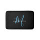 Élégant Black Sky Blue Script Monogramme Mat de bain. Un élégant monogramme de scénario bleu ciel combiné à une police blanche propre san-serif fait pour un look contemporain.