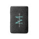 Elégant Vintage noir Motif botanique avec un monogramme turquoise et un nom de script blanc.