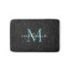Tapis De Bain Élégant noir floral Turquoise Script Monogramme