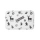 Un tapis de bain avec une répétition transparente en noir/blanc des éléments de Noël - bas, gingerbreadman, flocons de neige, rennes, ornements de Noël, bougies, sapin de Noël et les mots "Joyeux Noël" - en illustration. Il peut convenir à des occasions solennelles de Noël.