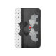 Une jeune fille design moderne de deux éléphants amoureux sur arrière - plan noir et pois noirs et blancs avec arc noir. Un cadeau unique pour la tendance et amoureux de la mode. .Un design élégant et sophistiqué.L'idée cadeau cool parfait pour elle en toute occasion.