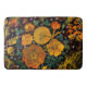 Cette image vibrante est une combinaison d'un tableau et d'un art numérique. Elle présente des fleurs jaunes dorés et oranges brillantes, avec des textures complexes, en forme de web. Les fleurs ressemblent à des roses et d'autres fleurs, entourées d'un enchevêtrement de tiges néons et de feuilles dans les tons vert, orange et rouge. L'arrière - plan est sombre, presque noir, ce qui renforce l'effet lumineux des fleurs et du feuillage. De minuscules lumières scintillantes parsèment l'atmosphère magique ou cosmique.