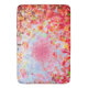 Abstrait automne feuilles et ciel est un tableau original. Rouges chaudes, éclaboussures orange et jaune si la couleur feuille contre un ciel bleu pâle texturé et le soleil rose.