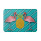 Deux flamants roses se rencontrent sur un ananas contre un arrière - plan de rayures d'aqua.