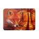 Renard rouge dans la forêt d'automne. Arbres et lumière du soleil chaude.