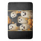 Décorez votre salle de bain heureux pour Halloween avec ce design amusant avec un arrière - plan noir avec des fantômes en casquette et des jack-o-lanternes citrouilles souriants. Des accents d'or de chaque côté du design.