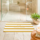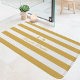 Ajoutez une touche d'élégance personnalisée à votre salle de bain avec ce tapis de bain rayé doré et blanc. Cette conception est composée de bandes larges et horizontales dans une combinaison de couleurs classique, offrant de l'espace pour un monogramme personnalisé. Ce produit peluche et absorbant est visuellement attrayant et fournit une surface confortable et sûre. Améliorez votre maison avec cet accent élégant et préppant.
