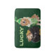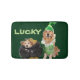 Ce tapis de bain est muni d'un leprechaun de récupérateur d'or avec un chiot d'or comme pot d'or. Le message dit : "LUCKY".