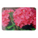 La photographie originale de MaeFlowers sur ce grand Bath Mat est un closeup d'hydrangées roses et leurs feuilles vert printemps déchiquetés. Le pompon central des pétales de fleurs remplit presque la photo, entouré par les feuilles verts et des morceaux d'autres pompons de fleurs de chaque côté.
