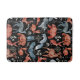 Illustrated woodland animals in red and blue, including foxes, bears, owls, and deer, are adorned with intricate patterns on a black background.