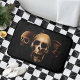 Trois crânes se dressent sur une toile de fond de tous les noirs. Une petite bête qui regarde au-dessus du crâne moyen.