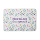 Citation gaie et joli tapis de bain blanc à motifs floraux.