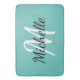 Tapis de bain avec un arrière - plan bleu turquoise clair et blanc monogramme personnalisé premier initiale et prénom.