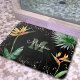 Tapis De Bain Monogramme de feuillage floral tropical Noir