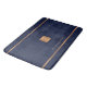 Tapis de bain monogrammed luxe tendance, exclusif à l'aspect élégant, avec un carré de parties scintillant métallique en cuivre faux or et rayures sur un élégant arrière - plan bleu marine élégant. Personnalisez-le avec le nom et le monogramme initial. Il peut s'agir d'un cadeau personnel ou familial élégant et personnalisé pour un anniversaire, un ménage, une retraite, un jour férié, un anniversaire ou toute autre occasion.