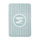 Parfait comme cadeau de baby shower ou cadeau d'anniversaire de enfant, ce tapis de bain monogramme turquoise pour enfants pour une pépinière ou une salle de bain pour enfants dispose d'un espace pour mettre monogramme avec la lettre de votre choix. Ce tapis de bain pour une salle de bain garçonnet dispose d'un motif plaid vert et bleu et blanc avec un cercle bleu-vert où vous pouvez mettre un monogramme d'une lettre.