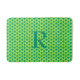 Un tapis de bain motif Art Déco à base de motif à vague traditionnel souvent vu dans les textiles japonais, aux couleurs du jade, allant du vert céleri pâle au bleu-vert profond, avec monogramme