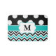 Montrez votre style d'une manière d'amusement avec ces pois et tapis de bain noirs et turquoises de monogramme de chevron.