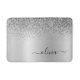 Tapis de bain à monogramme en métal brossé à paillettes métallisées argentées. C'est le cadeau idéal pour les remise de diplôme, les anniversaires, les mariages, les enterrements de vie de jeune fille, les anniversaires de mariage, les baby showers ou les enterrements de vie de garçon pour quelqu'un qui aime le luxe glamour et les styles chics.